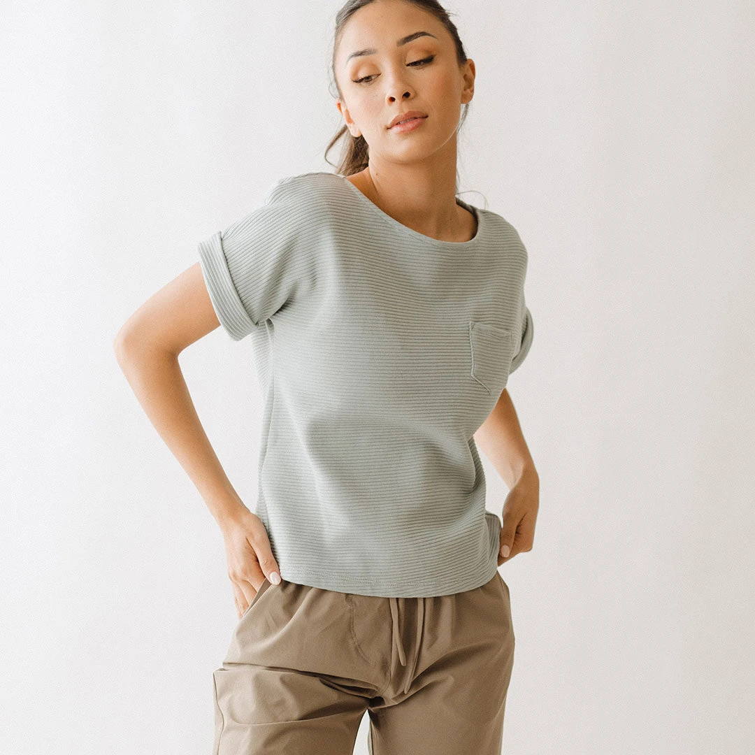 , or your favorite jeans! The Atlas Ribbed Blouse is a closet go-to for sure.