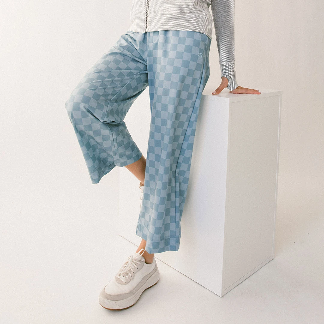 Keep it cool in our Blue Checker Audreys! Featuring a high-waisted 3 inch waistband and a cropped leg for ultimate comfort and confidence. Our Audrey Pants have never looked, or felt, so good!