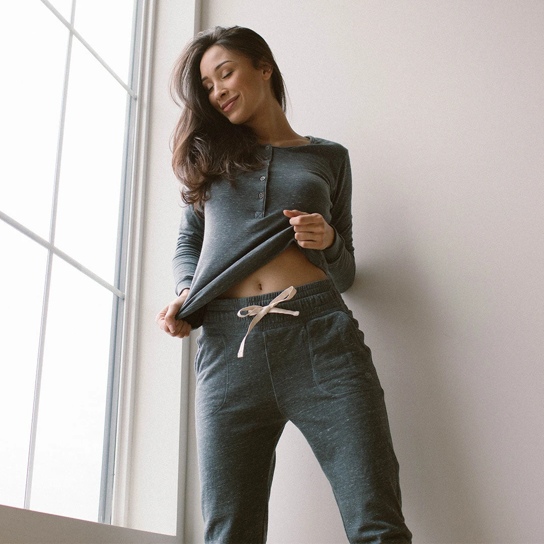 — introducing the Cabin Fever Joggers. Aptly named and designed with you and the cozy winter season in mind. These joggers come in beautiful earth tones, so plant yourself on that couch, girl. A wide 3-inch waistband means you won’t want to take these off. And you don’t have to!Â