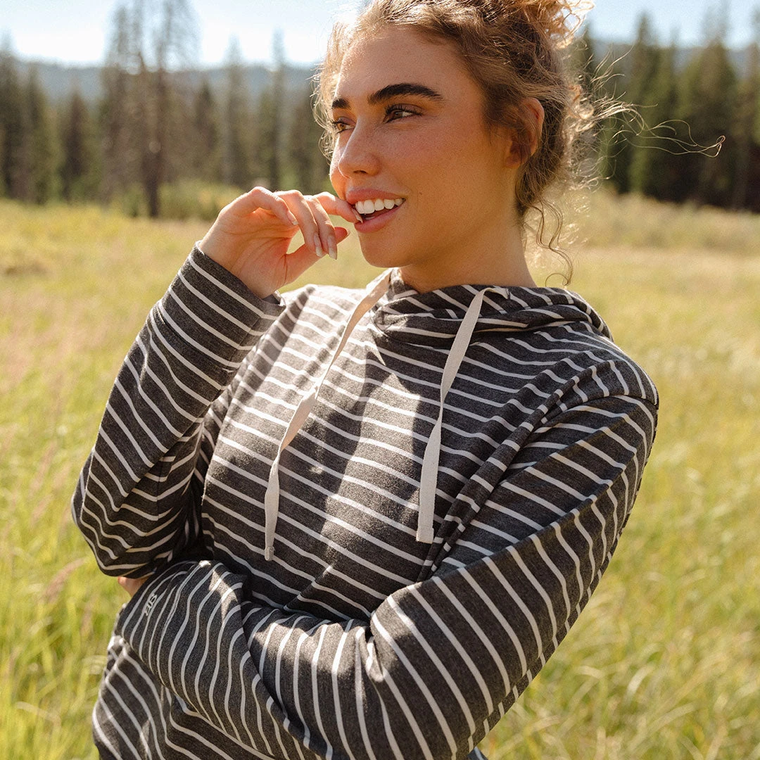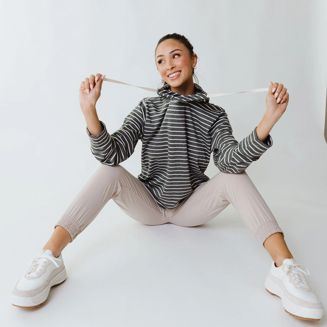 Oversized but not overweight, our City Pullover is the perfect hoodie for changing seasons! Charcoal gray stripes are a cool neutral that pairs with jewel tones, jeans, or