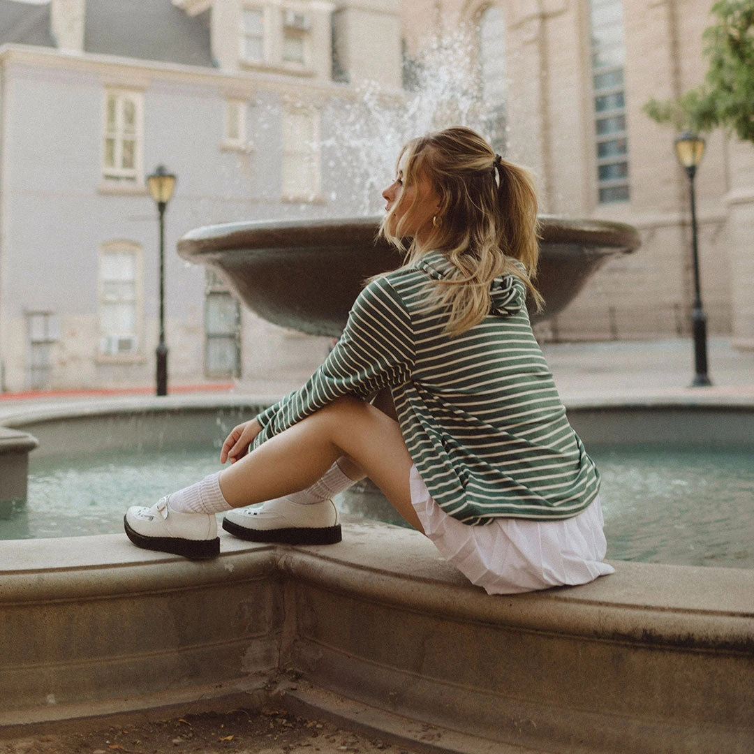 This green stripe hoodie is soft, cozy, and ready for a gorgeous fall hike! Changing colors are no match for this evergreen pullover. It’s the perfect oversized layer for cooler days!
