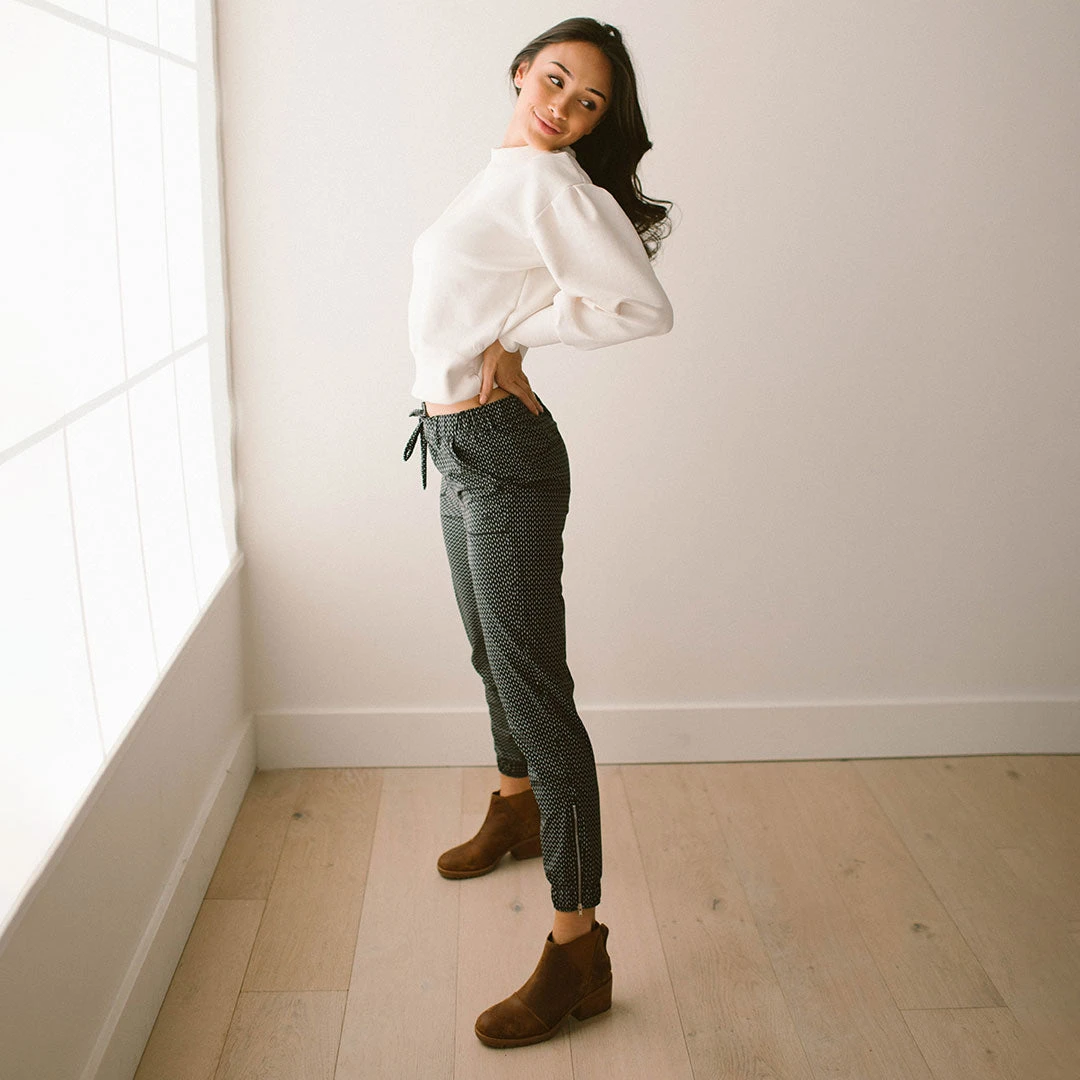 These Black Dash joggers for women are one of our top-sellers for a reason! Timeless with a bit of detail you’ll love— SILVER ankle zippers, an elastic and drawstring waistband, and a style that is incredibly flattering! You’ll never want to take them off.