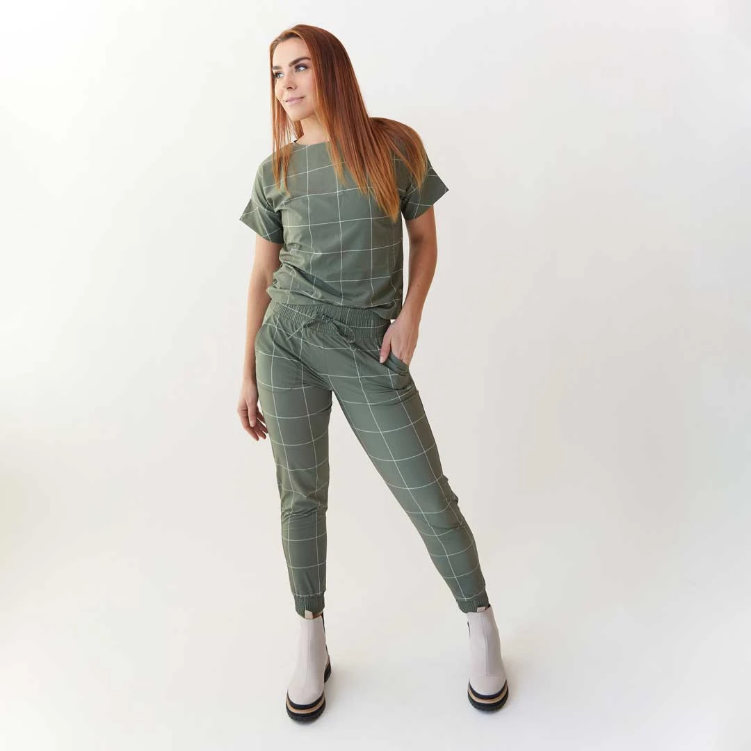 Sage Windowpane Boss Crop Tee