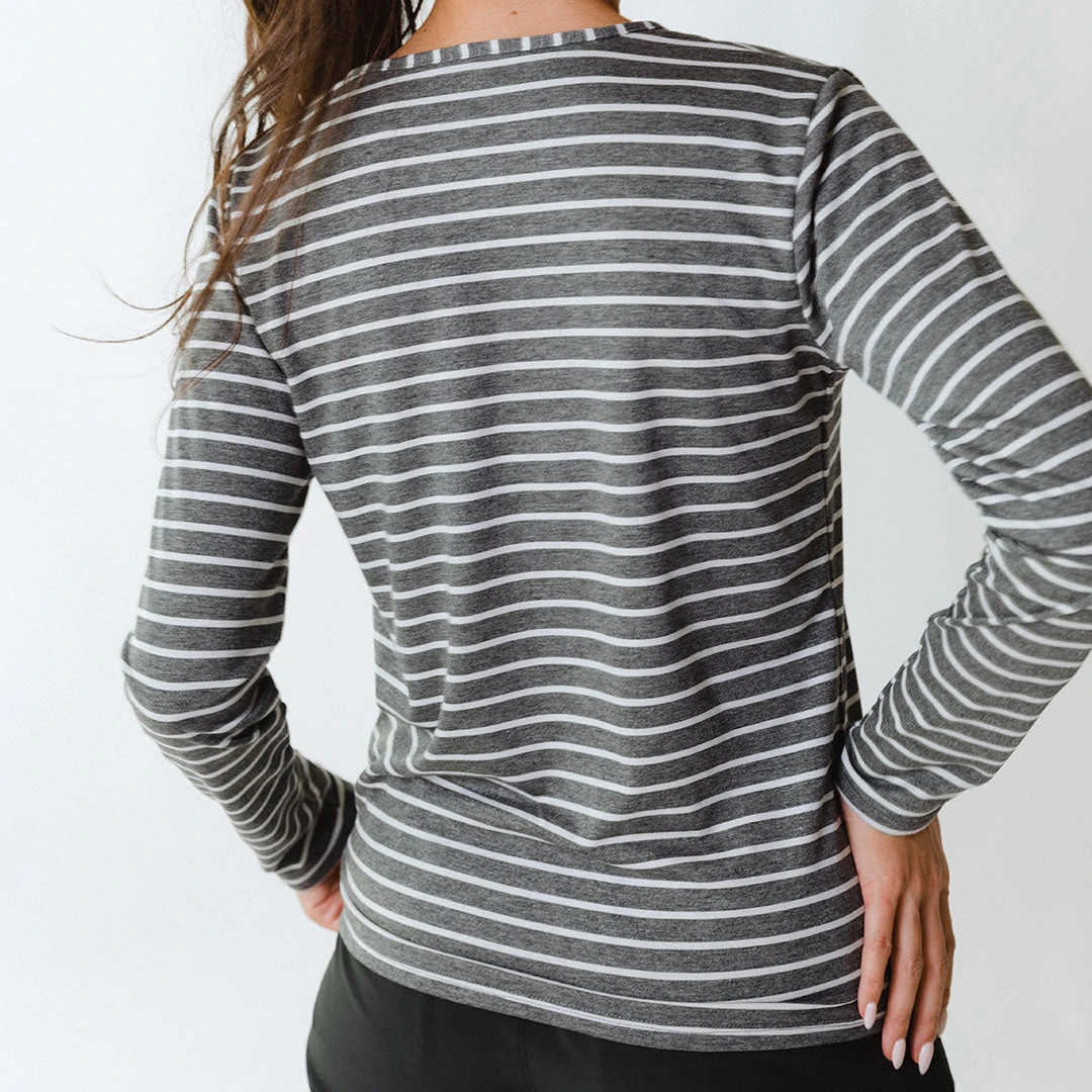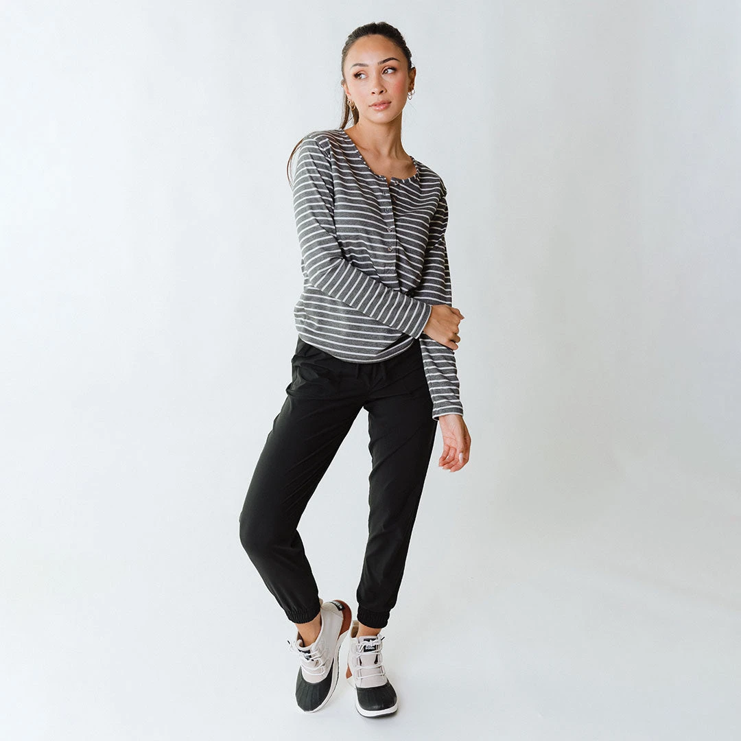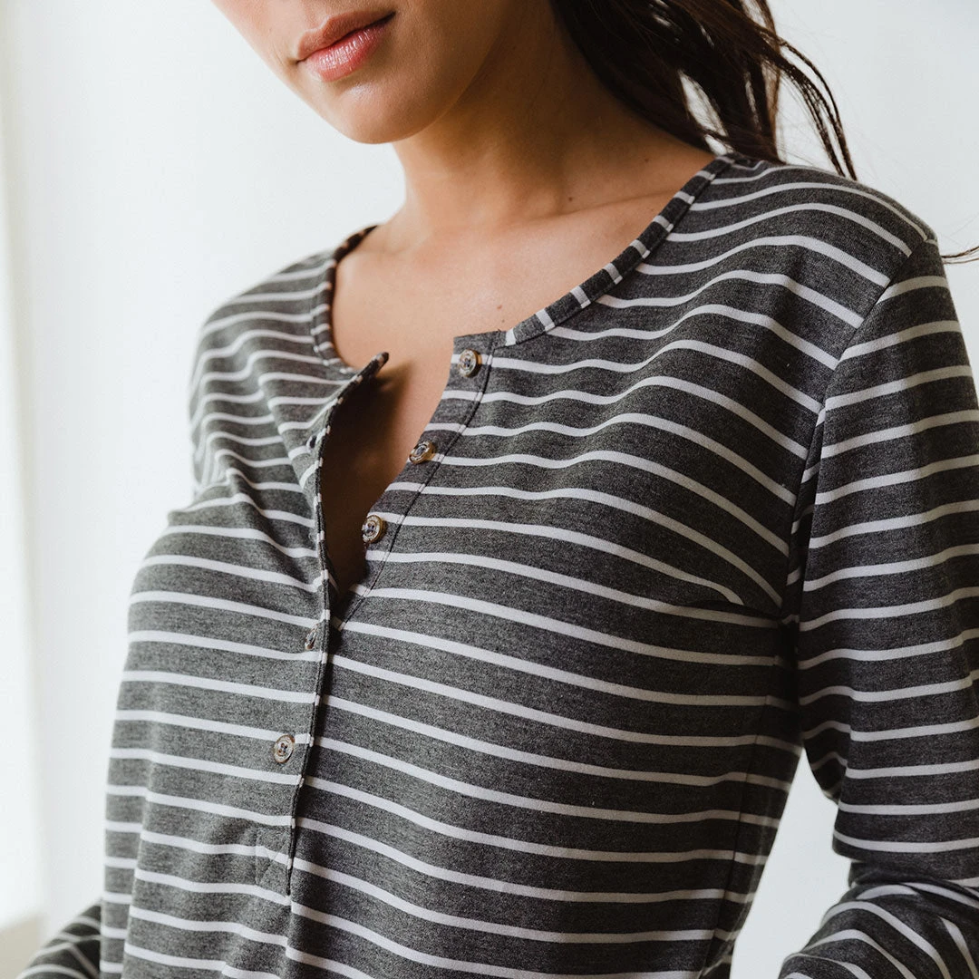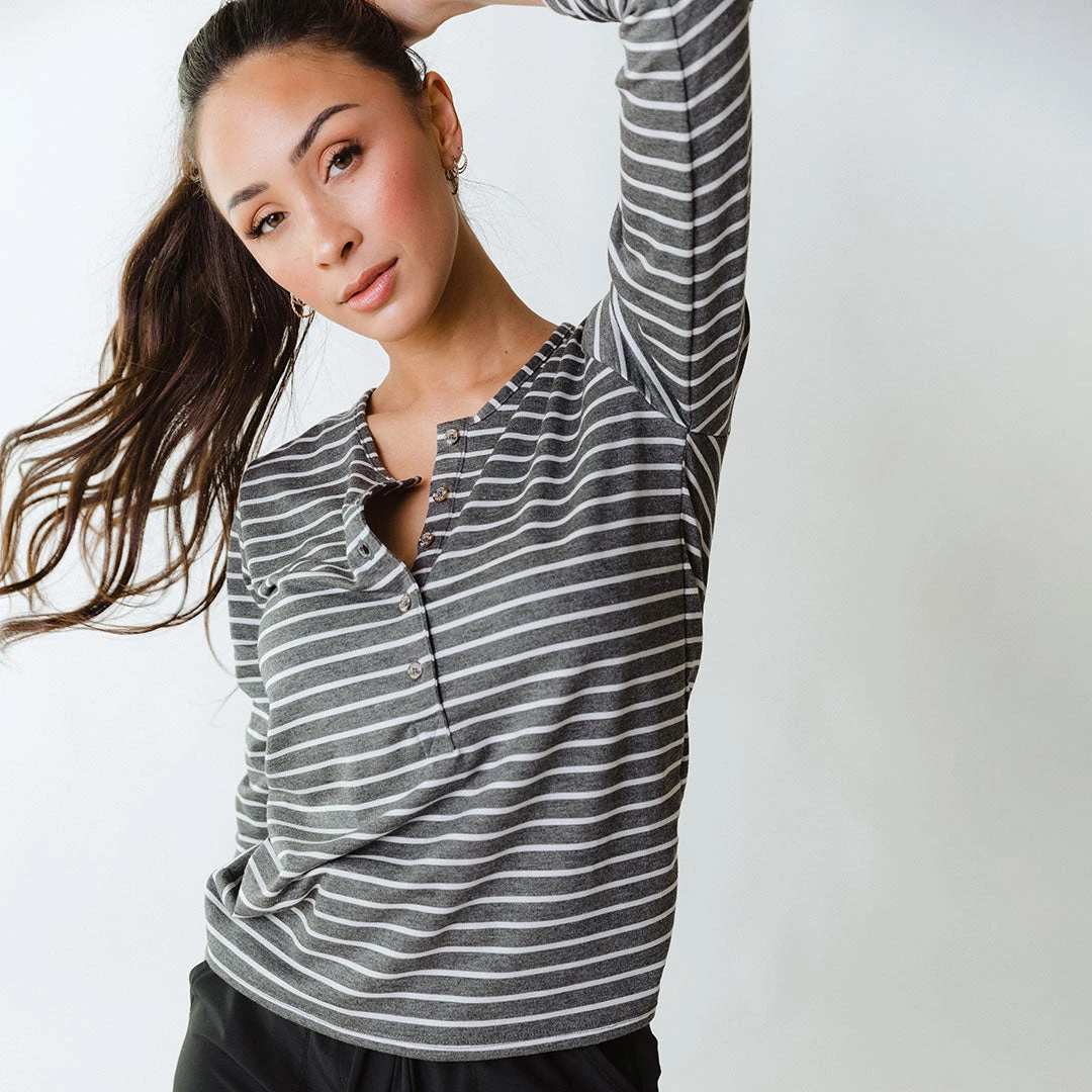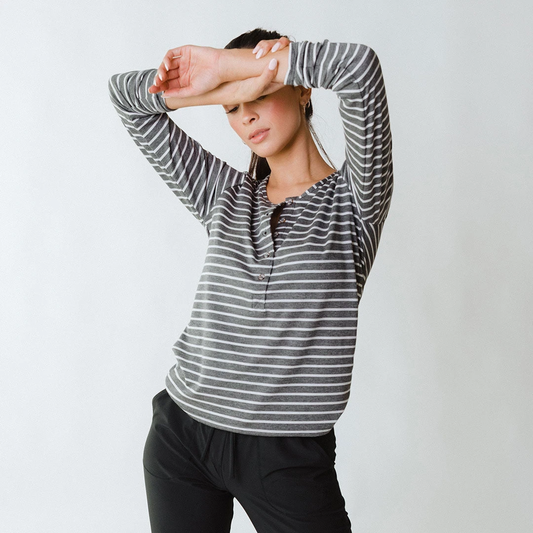 for a cozy day at home. You’ll be mixing and matching this charcoal grey Henley with all the things!