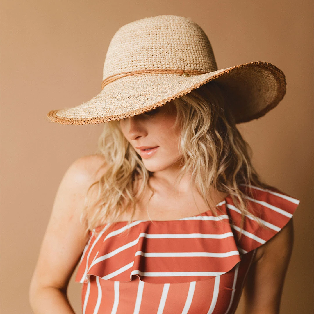 Look and feel good from HEAD to toe. Say hello to the Kelis Wide Brim Hat. This trendy ladies hat offers sun protection and adds the perfect finishing touch to your pool, beach or vacation look. Beautifully handmade, this accessory features a colorful braided paper band and bead detailing. Protect your face from the sun and look good doing it.