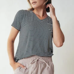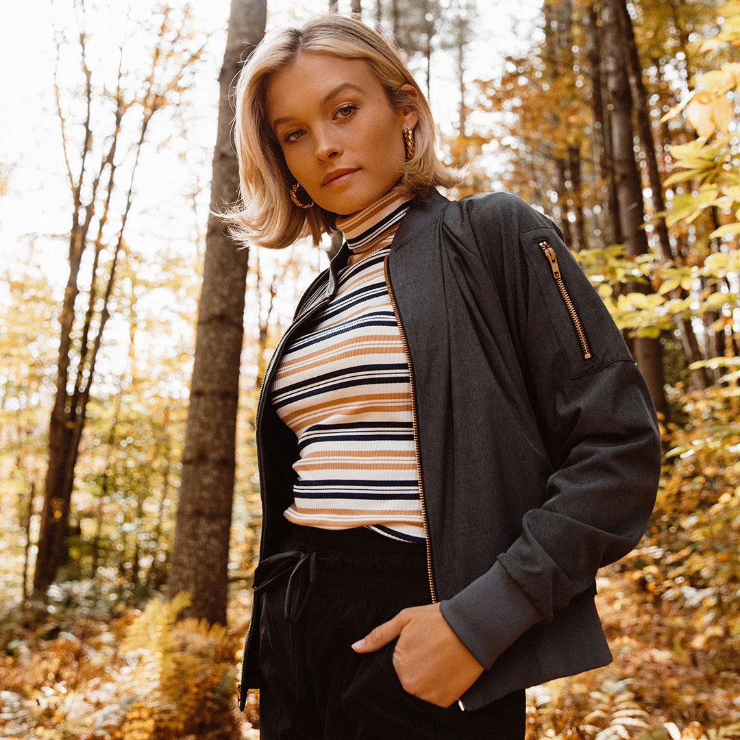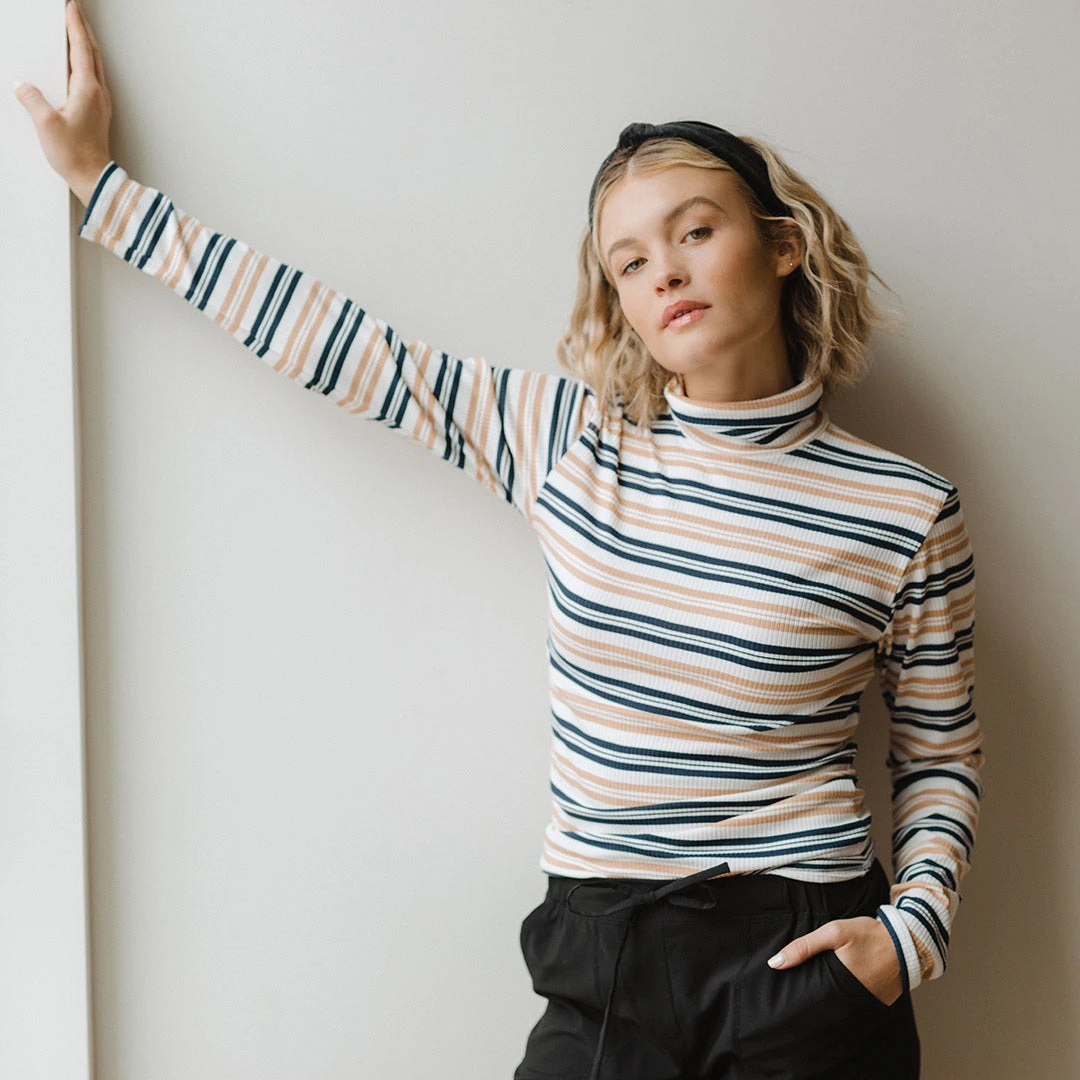 This striped turtleneck tee is going to be your go-to this season! Perfect for layering or pairing with your favorite Albion bottoms, we are loving this for any occasion. A classic style you can wear for years to come.