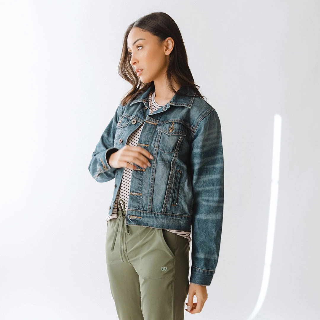 A new Albion favorite! This classic denim jacket is everything you want in a closet staple: mid length, comfortable, and goes with anything! Stay true to size for a classic fitted look, or try a size up for an oversized style. Denim is totally a neutral—this comfortable denim jacket pairs perfectly with