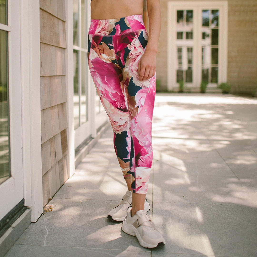 Meet our Movement Leggings! High-waisted, contoured, cropped, and sporting our stunning peony print, we are completely in love with these leggings. Don’t let the pretty design fool you; these pink floral leggings are ready to WORK. Supportive and comfortable, you’ll be reaching for these leggings for way more than just the gym.