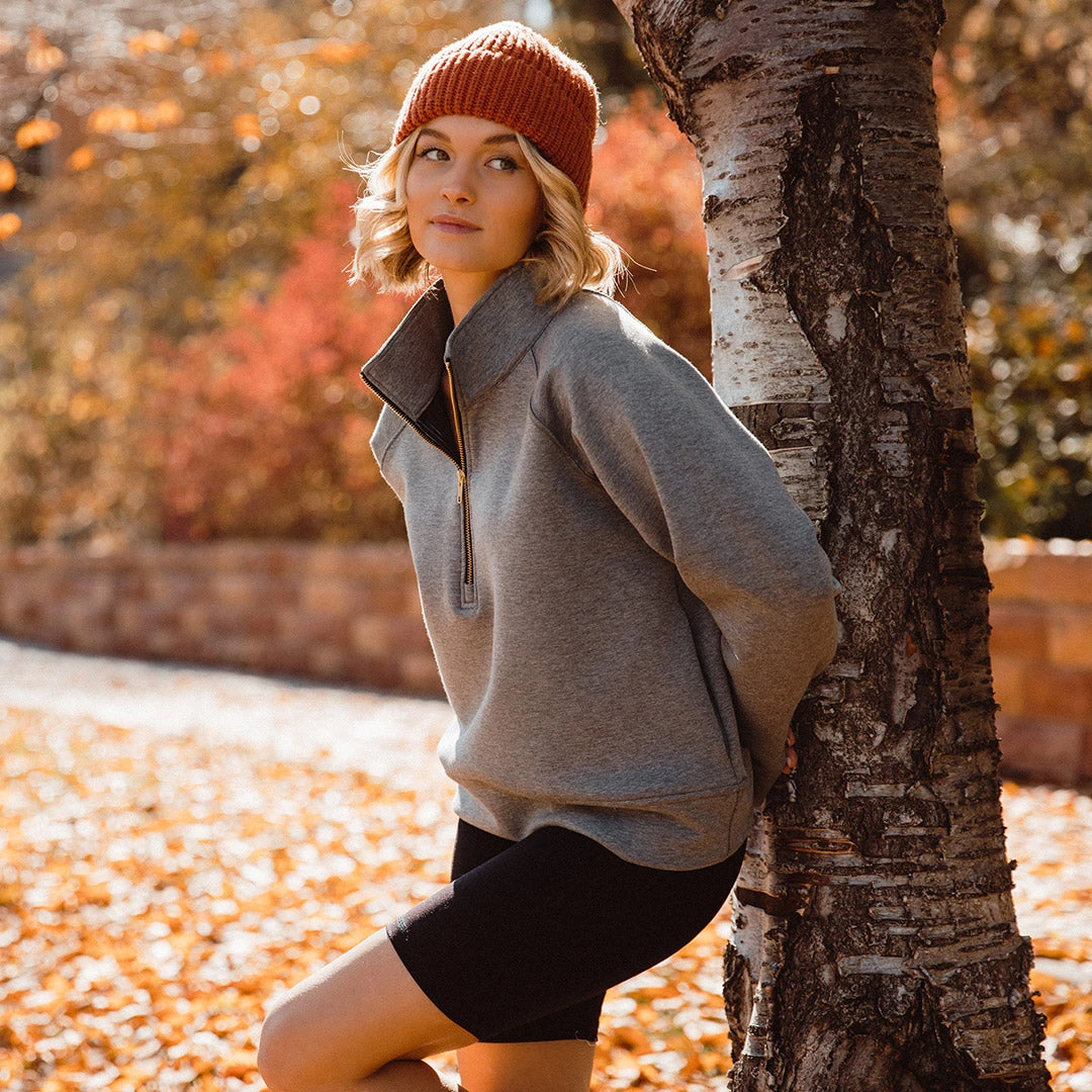 . The signature gold zipper, pockets, and half-zip neckline make it one of our comfiest tops, yet!