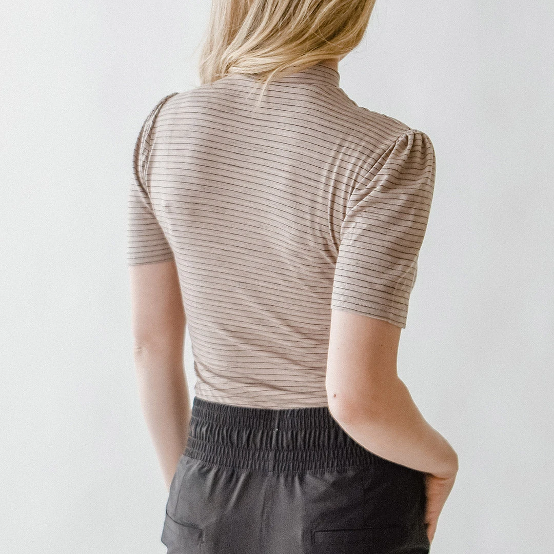 Puff Sleeve Tee, Taupe Stripe
