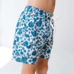 Just like his dad! These blue-based trunks are ready for Fourth of July family outfits, coordinating perfectly with our women’s and girl’s suits in the contrasting