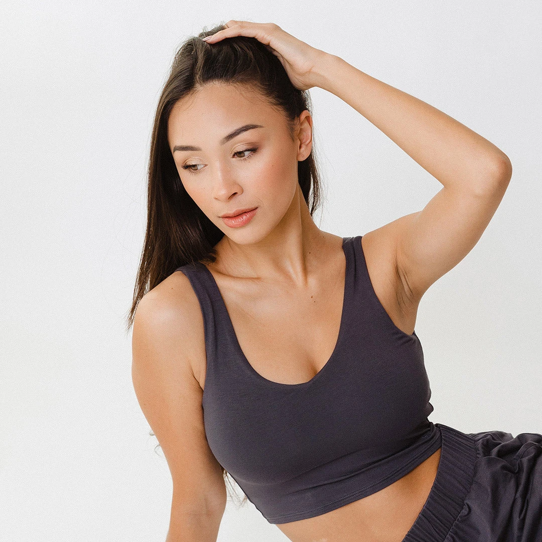 The Serenity Focus Tank is a go-to staple for any wardrobe. With a slight v-neck front, scoop back, cropped length, and shelf bra, you’ll want to live in it 24/7. Perfect for light exercise like yoga or barre, and comfortable enough to wear as a basic top all day long (or maybe just never change out of your workout clothes)