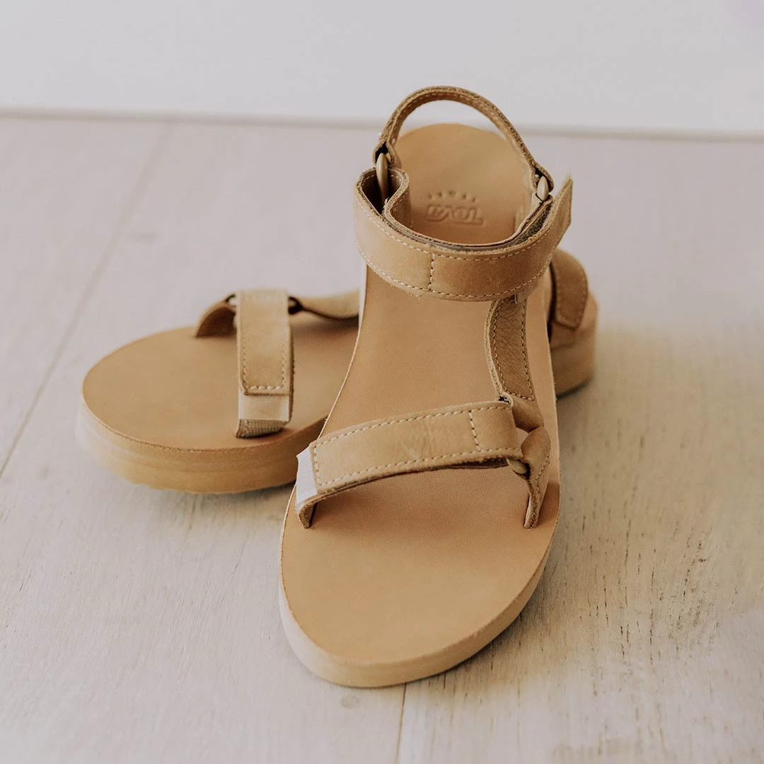 A neutral tan summer sandal that will keep up with all your adventures! This Teva leather sandal is a sophisticated spin on the classic beach sandal, with all the comfort and durability you need to keep going all day long.